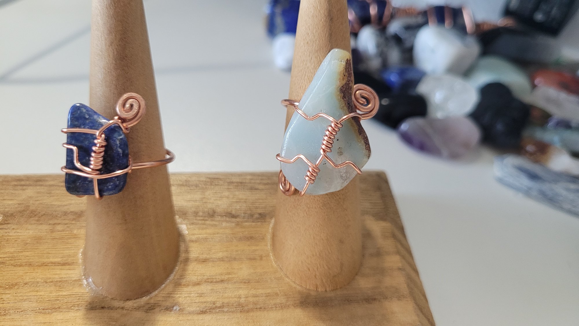 Choose stone below, adjustable copper band up to size 5-8